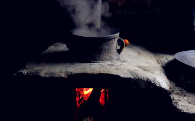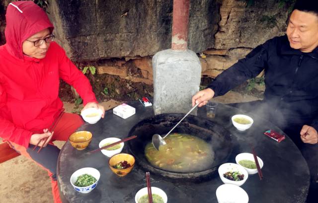 午餐的环境更是别具一格,许多都市年轻人可能未曾看过,在农村,家里做饭炒菜用的就是这样的土灶锅,灶台连着烟囱,一生火,热空气带着未完全燃烧的炭灰粒扶摇而上。