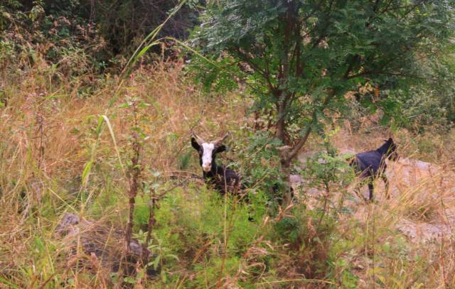 藏匿于草丛的黑山羊