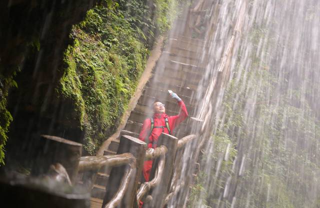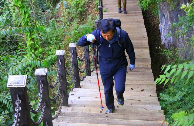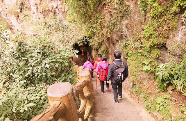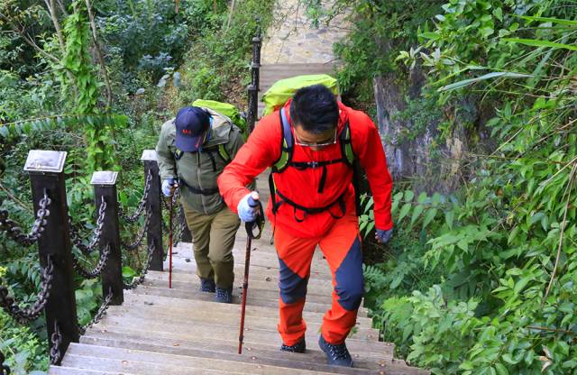 行走在步道上,时而穿梭于山腰,时而隐没于丛林,峡谷、山峰、悬崖、丛林、山涧连成一片,奇险幽美的风景线让人流连忘返。