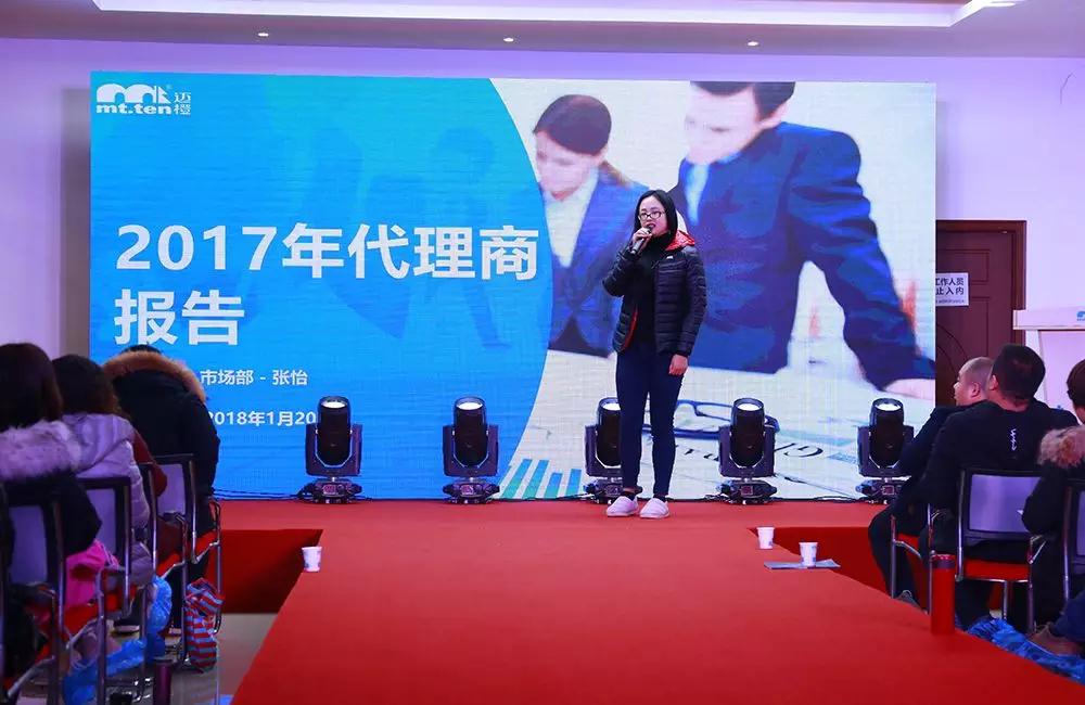 代理商负责人张怡对2017年全国代理商的总体销售状况、2017年的成功点、2017年的问题点进行了总结,较2016年销售业绩增长近一倍,并对2018年更高的目标进行展望,同时希望能从各个方面给予代理商更多的支持与帮助。