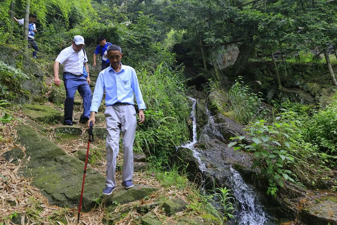 全体党员身着轻便服装,自备饮用水及少量干粮,简单的拓展热身运动后,迈开步伐向山林深处进发。