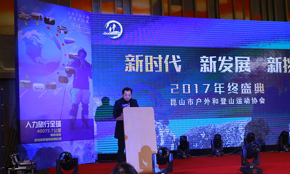 2017年12月31日,2017昆山市户外和登山运动协会年度盛典在昆山瑞士大酒店隆重举办。本届年度盛典以“新时代·新发展·新挑战”为主题,旨在响应国家政策号召,把握市场发展态势,总结协会建设成果,分析未来发展趋势,促进户外行业的交流与融合,打造昆山户外行业标志性的品牌赛事活动。