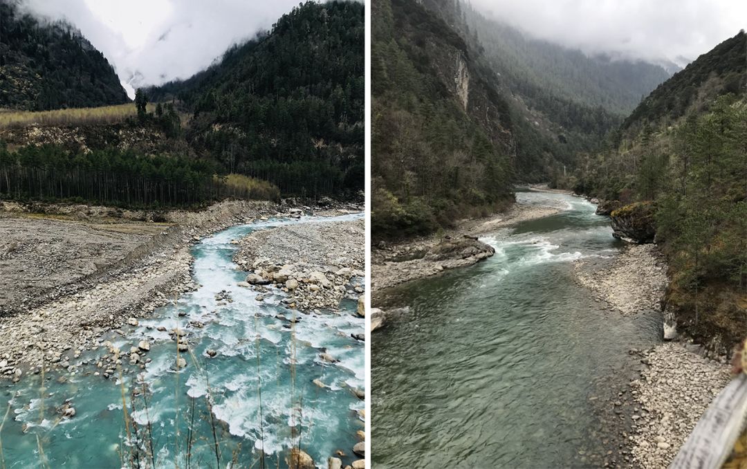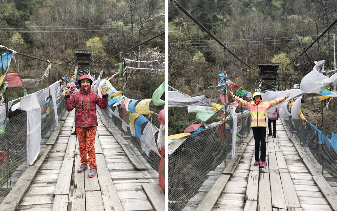 通过人工搭建的长长的竹板吊桥,桥上寒风凛凛。从摇晃的桥上走过,站在桥上往下俯视,桥下险要的峡谷流着不是湍急的江水,清澈见底,可见峡谷历经岁月的冲刷与洗礼演变而来的。
