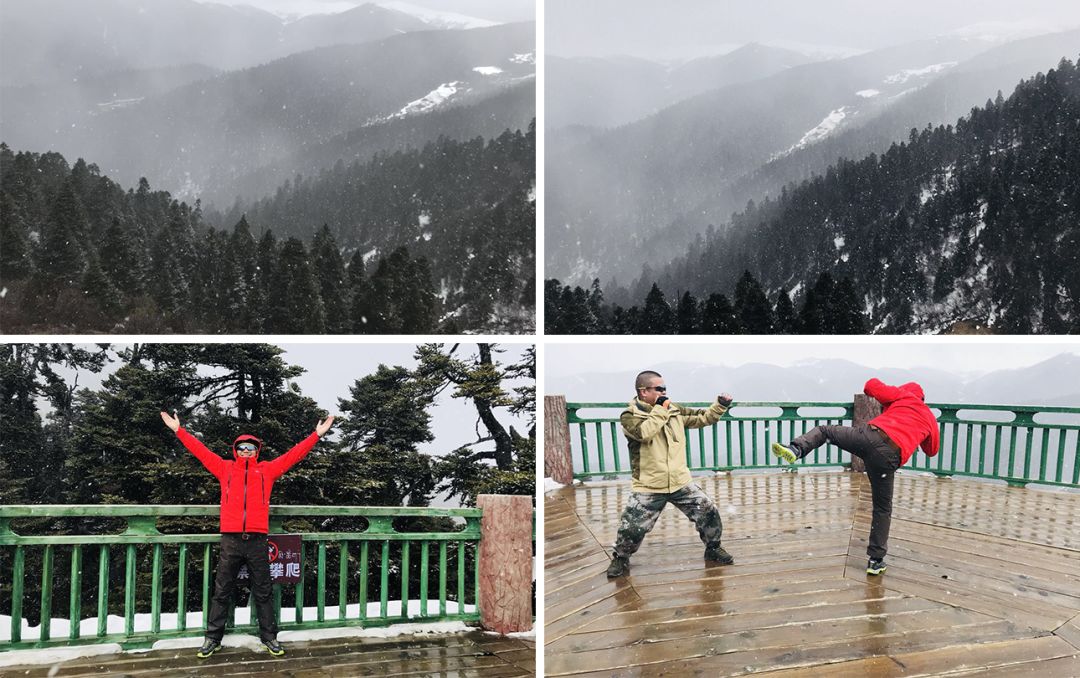 两侧青山由低往高分别由灌木丛、茂密的云杉和松树组成。雪山在云雾中若隐若现,让人忘了困倦,忘了疲惫,无比兴奋。